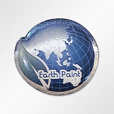 茨城県水戸市で建築塗装業を営まれる、アースペイント株式会社様から、バッジ制作のご依頼をいただきました。現代にふさわしく、環境にやさしいエコをイメージしたアースペイント様のロゴマーク。バッジ制作では、細かいデザインや文字を表現するのに最適な印刷仕上げをお勧めいたしました。バッジの表面は、印刷面を保護するため、エポキシ樹脂でコーティングしますが、透明樹脂で覆う加工は「水で潤う地球」のイメージにとても合っているのではないでしょうか。