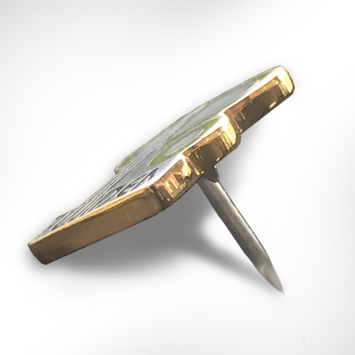 バッジ裏の付属品はタイタック仕様となっておりますので、スーツはもちろん、作業着などでもお使いいただけます。今回お選びいただいたエポキシ樹脂で色付けする「研ぎエポ」は、クリアで美しい発色がウリです。また、7000以上の色が調合できるので、コーポレートカラーを用いたいなど、指定色のある場合にはおすすめの着色手法になります。このたびは、バッジ専門店をご利用いただきましてありがとうございました。