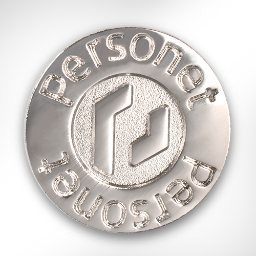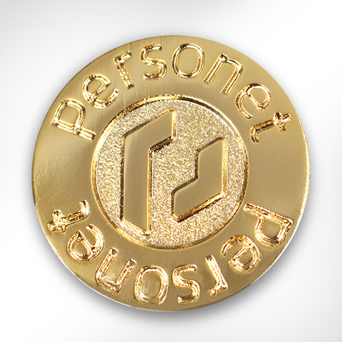 社章には、こうした想いが込められた社名の「Personet」とロゴマークをモチーフに使用。ロゴマークを中心に配し、まわりを社名のアルファベットで囲むバランスのいいデザインとなっています。仕様については、金・銀のメッキのみで他にはあえて色を加えず、凹凸でデザインを表現。凹部分に梨地加工を施すことで個性が際立つ仕上がりとなりました。バッジ裏の付属品には、針で差しとめるタイプのタイタックを選択されているので、衣服を選ばずに社章を装着していただくことができます。