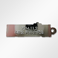 バッジ・ストラップとしての表面は当然、七宝仕上げで当時の物を再現し、また裏面には日付と同窓会記念の文字を刻印いたしました。全体としては、ニッケルメッキで仕上げていますので、ストラップとしてはなかなか例を見ない高級仕様となっています。